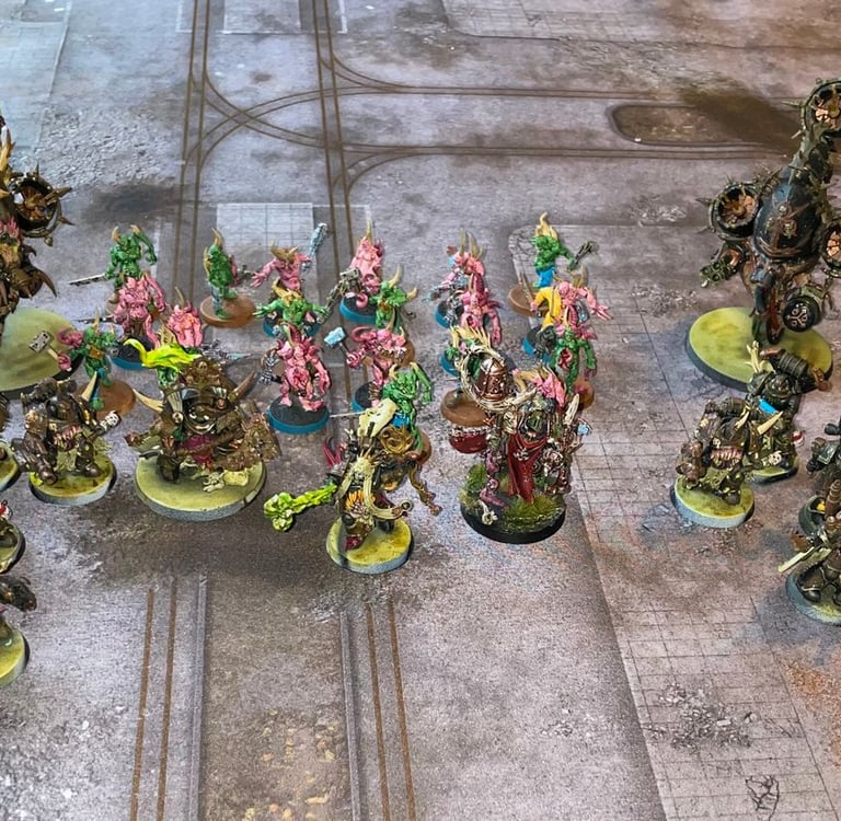 Einst war Morbidex K’rul ein Apothekarius der Death Guard, bis er während des langen Krieges im Wirbel des Chaos von einer Vision Nurgles erfasst wurde. In einem fiebrigen Traum offenbarte der Seuchenvater ihm die Existenz eines uralten, vergessenen Vektors – der Wankelfäule, einer Seuche, die das Bewusstsein der Lebenden zersetzt und sie in willenlose Diener verwandelt, bevor ihre Körper verrotten. Von dieser Offenbarung getrieben, zerstörte Morbidex sein medizinisches Werkzeug als Bekundung, sich einem neuen Ziel zu widmen und erhielt ein seuchenverkrustetes Muttermal der Hexerei. Seitdem trägt er die Nurgles Gaben in seinem Innersten – ein brennendes Verlangen, Großvaters‘ Geschenk zu vollenden und zu verbreiten.